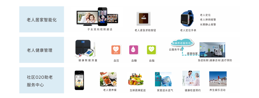 "互聯(lián)網(wǎng)+家"智慧社區(qū)綜合管理平臺(tái)的養(yǎng)老服務(wù)是針對(duì)中國人口機(jī)構(gòu)老齡化日益嚴(yán)重、社會(huì)支老助老資源嚴(yán)重不足,特為老年人安享晚年而設(shè)計(jì)的健康養(yǎng)生服務(wù),社區(qū)專門為老年人配置的健康檢測(cè)設(shè)備及智能家居安防設(shè)備,通過平臺(tái)服務(wù)給老人提供一個(gè)安全舒心的生活社區(qū)。