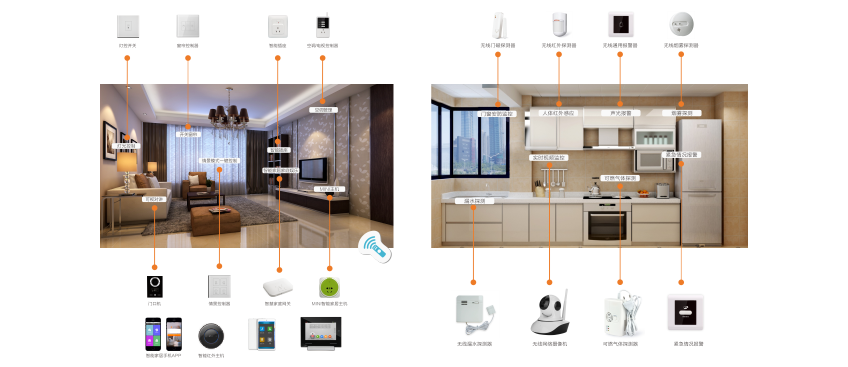 通過門磁、紅外探測器等無線設(shè)備可輕松實現(xiàn)安防控制和報警;通過煙霧探測器、燃氣探測器和漏水探測器,可有效防范廚房發(fā)生的各類意外,享受無憂生活;通過無線網(wǎng)絡(luò)攝像機,可以實時查看家中視頻,隨時隨地關(guān)注小孩、老人和家居的安全。
